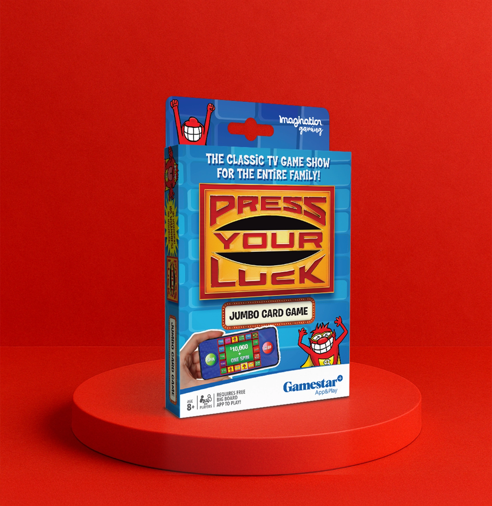 This jumbo-sized edition offers big-time fun and even bigger reactions. For an enhanced game night experience, download the free Press Your Luck Appcessory to access the Electronic Big Board, just like on the show!