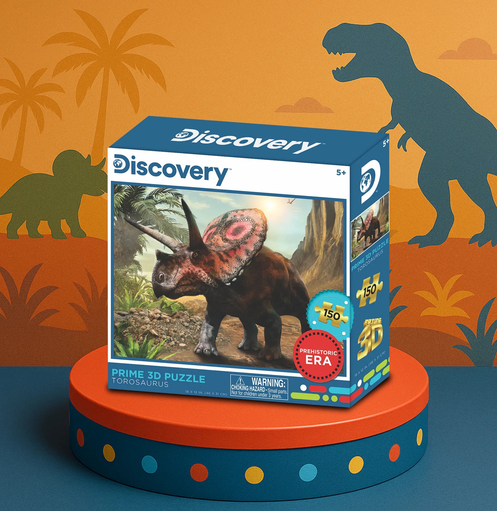 Torosaurus Discovery 3D Jigsaw Puzzle – 150 Piece Dinosaur Puzzle | Prime3D | 18x12" | 1Di Canada